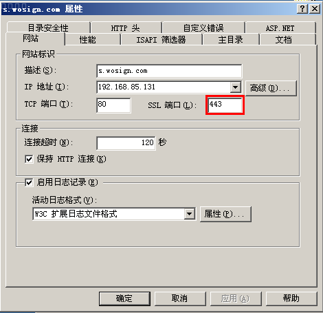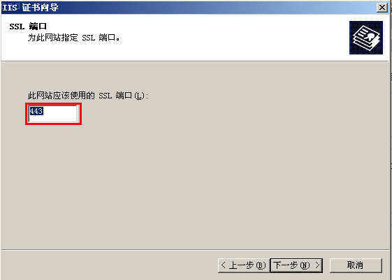 4,指定ssl端口,SSL缺省端口为443端口,请不要随便修改。